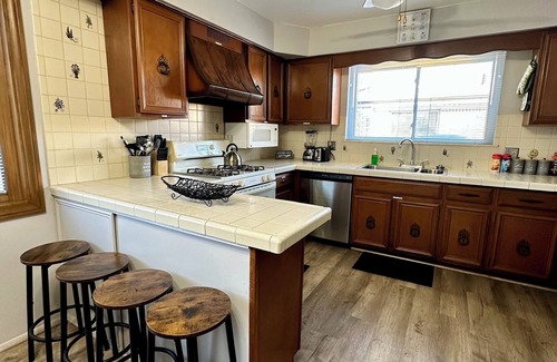 Este alojamiento de 4 dormitorios y 1.5 baños cuenta con una sala de estar, un comedor, una zona para barbacoas y chimenea. El cuarto de baño incluye un secador de pelo, toallas y papel higiénico. La cocina está equipada con horno, placa de cocina y frigorífico, además de cafetera y tetera, hervidor eléctrico y microondas. Y no tendrás que llevarte ropa de más, porque podrás aprovechar la lavadora y la secadora.