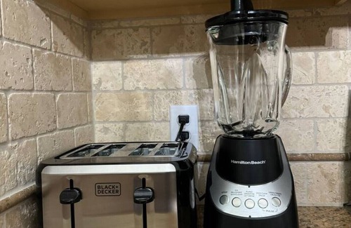 Este alojamiento de 4 dormitorios y 1.5 baños cuenta con una sala de estar, un comedor, chimenea y aire acondicionado. El cuarto de baño incluye un secador de pelo, toallas y papel higiénico. Prepara una comida casera en la cocina, equipada con horno, placa de cocina y frigorífico, además de cafetera y tetera, hervidor eléctrico y máquina de hielo. Y gracias a la lavadora y la secadora, podrás viajar con poco equipaje.