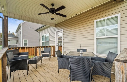 This charming house in Springfield is a marvelous retreat for guests near the golf course! With 3 cozy bedrooms including a king, 2 queens, a pack and play. This home offers a nice space for relaxation. Enjoy the convenience of amenities like a garage to park in or play shuffleboard! A relaxing patio with furniture, fenced in backyard. With corn hole, bocce ball, . Two fully stocked bathrooms one with a shower only with tiled seat. A bonus room perfect for the whole family. A huge sectional couch, 75 inch tv, two arcade games, a twin daybed with trundle and a queen airbed. We offer amenities for kids such as a highchair, pack n play with sheets, a baby bath tub, a baby gate and kid dinner ware. Seasonal community pool! Open roughly memorial day to labor day.
