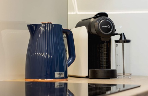 Refrigerator, induction hob, dishwasher, oven with microwave, coffee maker, kettle, set of kitchen and tableware.