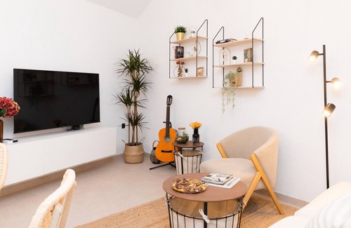 You will be able to prepare meals in the fully equipped kitchen with a 4-seater dining table. There is also a living room with a sofa, an armchair, a TV and a coffee table.
