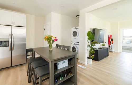 Al instalarte en este alojamiento de 2 dormitorios y 1 baño, encontrarás una sala de estar, aire acondicionado y escritorio. Conéctate al wifi gratis, o relájate frente a un Smart TV. El cuarto de baño incluye un secador de pelo, toallas y papel higiénico. Prepara una comida casera en la cocina, equipada con horno, placa de cocina y frigorífico, además de cafetera y tetera, hervidor eléctrico y máquina de hielo. Y como podrás aprovechar la lavadora y la secadora, no te hará falta llevar mucho equipaje. Otras comodidades incluyen ropa de cama, una tabla de planchar, calefacción y una silla de oficina.