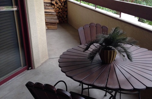 La unidad ofrece una cocina completa, para que no tenga que comer fuera en cada comida. Cuenta con chimenea de leña, lavadora-secadora, 2 dormitorios y 3 baños completos. El salón también tiene un sofá cama plegable para invitados adicionales. Hay un balcón con una gran vista de la ciudad y las montañas detrás de él.