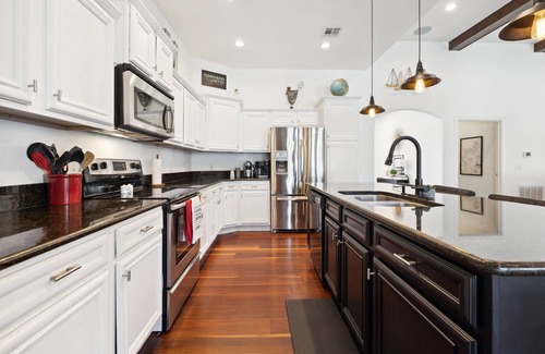 Este alojamiento de 3 dormitorios y 2 baños cuenta con una zona para barbacoas, chimenea y aire acondicionado. También puedes utilizar la bañera de hidromasaje, además de otras comodidades como toallas, jabón y papel higiénico. La cocina está equipada con horno, placa de cocina y lavavajillas, además de microondas. Y no tendrás que llevarte ropa de más, porque podrás aprovechar la lavadora y la secadora.