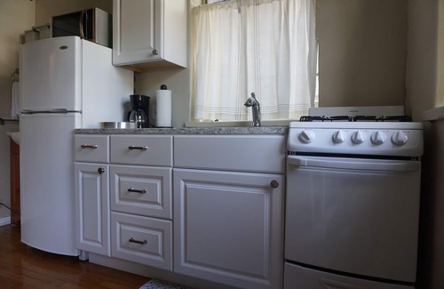 Este apartamento está ubicado en el primer piso de un edificio de apartamentos de estilo victoriano de seis unidades. La casa es un clásico victoriano construido en la década de 1890, que ha sido remodelado de arriba a abajo. Ubicada en una calle arbolada con amplias aceras, esta casa está lo suficientemente cerca como para caminar por el centro, pero en una calle tranquila del vecindario. La casa tiene un gran porche que comparten todos los huéspedes, y un bonito patio cercado, con césped y un patio con muebles. Hay estacionamiento de pago en la calle disponible y también estacionamiento gratuito en la calle.