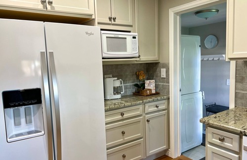 * COCINA: todos los gabinetes nuevos con encimeras de granito, electrodomésticos nuevos: el refrigerador ha filtrado agua y hielo junto con una rejilla para vinos, un rango de convección, lavaplatos, microondas, cafetera, prensa francesa, Nespresso, licuadora, tostadora, todos los utensilios de cocina y vajilla. , condimentos, café y té.