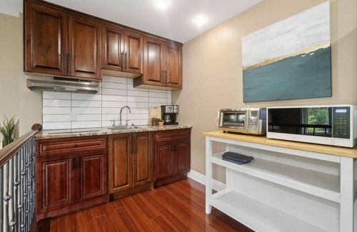 If you’re looking for a peaceful stay, you’ll enjoy the quiet neighbourhood that is Portland Hills. This suite with private entrance boasts bright, open living; an outdoor space with a bbq and the soothing sounds of the brook, and even a pool table for those who fancy picking up a cue!