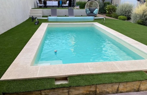 No, esta Tavel villa no tiene piscina. Vea los detalles sobre la disponibilidad de piscina interior o privada y otras instalaciones.