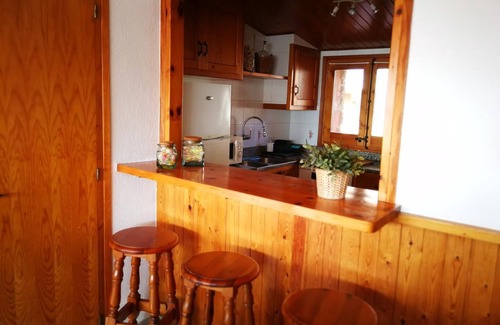 Apartamento totalmente amueblado con 3 dormitorios, baño con ducha, aseo, salón comedor con chimenea, cocina abierta equipada y fantáticas vistas panorámicas a la montaña.