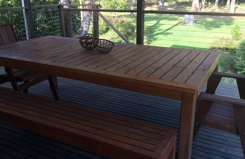 Junto al monte, la casa duerme ocho. Hay dos camas de matrimonio en el piso de arriba y cuatro camas individuales abajo. La casa en sí tiene esa sensación de playa relajado con muebles de caña 50s, pisos de madera pulida, nueva cocina con estufa Ilve y lavavajillas y nuevos baños con estilo. En el verano, el salón en nuestra terraza con vistas al parque nacional, mientras que la cena se cocina en la barbacoa. Usted está seguro de ver canguros y otros animales salvajes. En invierno, hay un fuego de combustión lenta y suministros de madera, junto con la calefacción de gas para complementar.