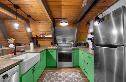 Welcome to the Bergstrasse Getaway, your cozy retreat nestled in the picturesque heart of Government Camp. Just a breath away from the stunning Mt. Hood, this charming A-frame cabin seamlessly merges rustic charm with modern comforts. Imagine unwinding in the private sauna or toasting marshmallows at the wood fire pit—this is the perfect base for adventure lovers and relaxation seekers alike. Professional cleaning and 24/7 support with local Cascadia Getaways.