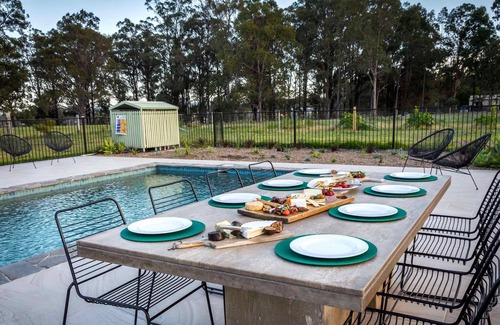 La fabulosa área de la piscina es un gran lugar para refrescarse, tomar el sol o disfrutar de una relajante barbacoa. En invierno también te mantendrán acogedor con la chimenea, ¡perfecto para tomar un vaso de rojo y un buen libro! Diríjase a los viñedos para una degustación o un almuerzo con una vista en Bistro Molines, a menos de 10 minutos de su puerta o por qué no echa un vistazo a algunas de las últimas tiendas y cafeterías de la ciudad. Perfecto para familias o grupos de amigos, Bernstein Estate ofrece una excelente experiencia de escapada en Hunter Valley.