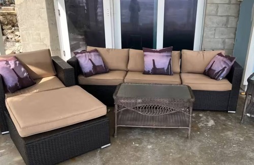 Walk right out to the beach! Your personal paradise awaits in this spacious and serene oceanfront retreat! Away from the crowds, enjoy a peaceful stay at this perfectly located walkout apartment on the beach, boasting a private bedroom, bathroom with shower and tub, kitchen with eat in bar and living room with 65" smart TV and stunning ocean views. The outdoor patio with firepit is just steps from the ocean and offers another area to relax and enjoy the sound of the waves. A large sectional in the unit can serve as an extra sleeping space and/or full-size air mattress also available. It's easy to see why you'll be able to unwind at our place. We would love to have you as our guest!