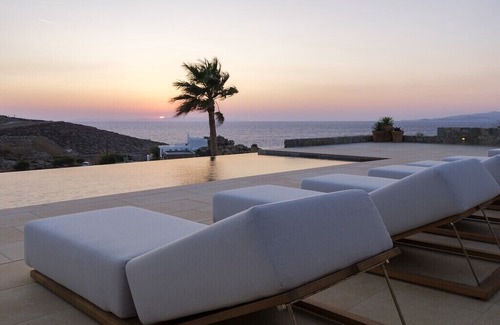 the captivating Mykonos Island. This architecturally striking stone villa blends
