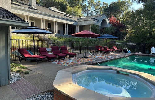 Rodeado por una pared, este escape exquisito es perfecto para grupos de parejas en una escapada de fin de semana. Los jardines son hermosos y tranquilos, la casa es única, con carácter y encanto. Las habitaciones están excelentemente decoradas y la cocina está bien equipada. Hay una gran piscina y comodidades en la cubierta. Excelentes instalaciones de barbacoa con una barbacoa de propano regular y un fumador Traeger de primera línea. Encontrará un baño completo en la casa de la piscina y una sauna seca, además de agregar a su relajación.