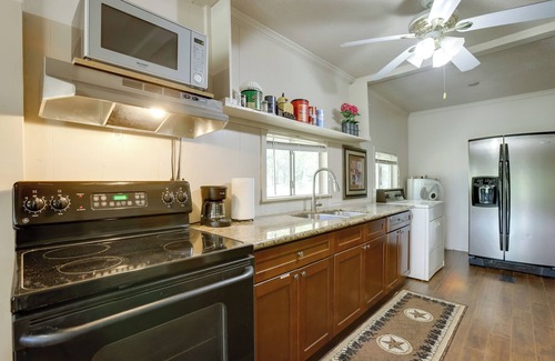 Adventure and relaxation are right outside the door of this charming vacation rental in Cleveland, Texas! Take a provided bicycle out for a ride or simply unwind in the hammock with your favorite book and listen to the wind rustle through the trees. After strolling along the water at Lake Livingston State Park, return to the 2-bedroom, 1-bath cottage and stargaze around the fire pit. Your cozy wooded escape is just a click away!