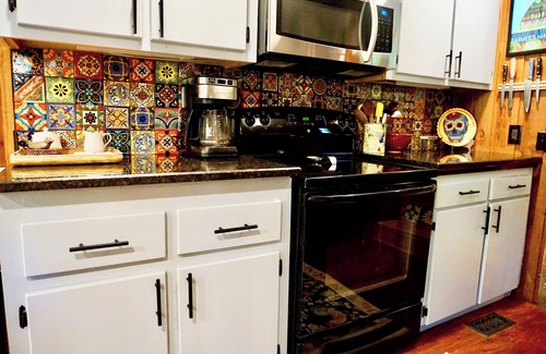 Maestro con cama King y puerta francesa a la cubierta trasera características recién renovado baño privado personalizado. Habitación con cama de matrimonio se abre al porche filtrada. Loft con dos camas individuales y baño privado recién decorado. Sofá en gran salón y cama doble en porche. Cocina totalmente equipada y nueva parrilla de gas.