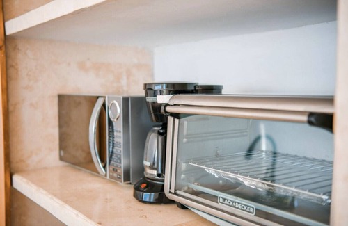 Este alojamiento de 1 dormitorio y 2 baños cuenta con una sala de estar, aire acondicionado y servicio local de entrega de comida. La cocina está equipada con placa de cocina y frigorífico, además de cafetera y tetera, microondas y utensilios de cocina.