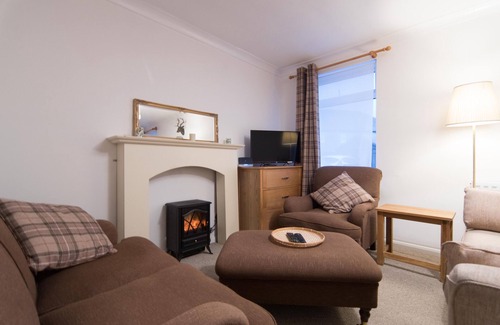 La casa tiene una muy pequeña pero bonita zona de jardín a la entrada de la casa que tiene una zona de estar y es ideal para niños pequeños jueguen antes de salir a explorar Escocia.