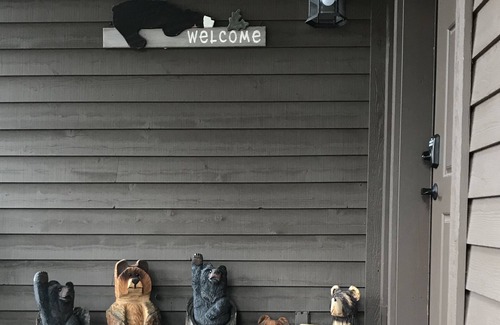 Usted puede disfrutar del aire libre con total comodidad desde nuestra cabaña cuenta con todas las comodidades del hogar, incluyendo TV de pantalla grande con reproductor de DVD, equipo de música, libros, juegos y rompecabezas. El dormitorio principal se encuentra en la planta baja y cuenta con un baño completo, su propia terraza privada, dos ventanas de gran tamaño con vistas al bosque, una cama king size y walk-in closet.