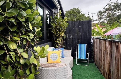 Relájate en la bañera de hidromasaje o tómate algo en el porche o patio de este apartamento. Para cambiar un poco, entra y disfruta del wifi y de la televisión.