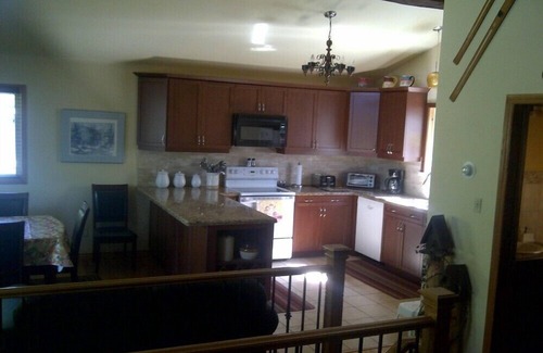 Totalmente equipado, decorado con buen gusto 3 dormitorios acogedor chalet. La planta principal cuenta con un amplio salón de concepto abierto, cocina y comedor, baño, con techos altos y pisos de roble. También una chimenea de gas que completa la escena. Siéntase como en casa en una cocina totalmente equipada, área de comedor, televisor de 32 pulgadas y reproductor de VCR / DVD. Salida a una terraza privada de 800 pies cuadrados con barbacoa, mesa de picnic y sombrilla. El nivel inferior tiene 3 habitaciones grandes y espaciosas con vestidores y armarios. Cada habitación está decorada con una llamarada especial para que su estancia sea relajante e inolvidable. También un baño de 3 piezas recientemente renovado se encuentra convenientemente en este piso.