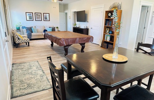Este alojamiento de 1 dormitorio y 1 baño cuenta con una sala de estar, un comedor y aire acondicionado. Pon a prueba tus habilidades jugando al billar, o disfruta del wifi gratis y de la televisión. El cuarto de baño incluye un secador de pelo, toallas y papel higiénico. La cocina está equipada con horno, placa de cocina y frigorífico, además de cafetera y tetera, hervidor eléctrico y máquina de hielo. Y como podrás aprovechar la lavadora y la secadora, no te hará falta llevar mucho equipaje. Otras comodidades incluyen ropa de cama, una tabla de planchar, calefacción y una mesa de comedor.