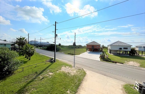 Vista del golfo desde la sala de estar y porche delantero. Nuevo con encimeras de granito. Cocina abierta con distribución de loft con altillo en la parte superior con vistas. Garaje en la planta baja para aparcamiento.