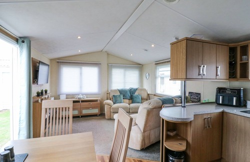 Bluebird, a single-storey caravan, consists of a kitchen with gas oven and hob, microwave, fridge/freezer, and air fryer, a dining area with seating for four guests, and a sitting area with smart TV and electric fire. The bedrooms consist of a double with en-suite basin and WC, and twin. There is a shower room with walk-in shower, basin, and WC. WiFi, fuel, power, bed linen, and towels are included in the rent. Outside, there is a non-enclosed front garden with patio, gravel, lawn, and furniture, and off-road parking available. Two well-behaved dogs are welcome. Sorry, no smoking. Shop 0.1 miles, pub 0.1 miles, beach 0.3 miles. Return year after year to Bluebird. Note: Guests have free access to on-site facilities including a heated swimming pool.