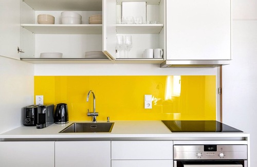La cocina está equipada con horno, placa de cocina y frigorífico, además de microondas y utensilios de cocina. Conéctate al wifi, o relájate frente a televisión. También hay un reproductor estéreo. El cuarto de baño incluye un secador de pelo y toallas. Y gracias a la lavadora y la secadora, podrás viajar con poco equipaje. Otras comodidades de este alojamiento de 1 dormitorio y 1 baño incluyen una sala de estar, ropa de cama, una tabla de planchar y servicio de limpieza disponible a petición.