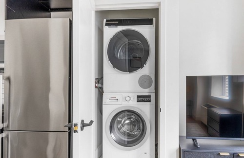 As with any Blueground apartment, you’ll find a thoughtfully designed space complete with beautiful furniture and a fully equipped kitchen in this studio property. And, thanks to our superior quality mattresses, luxury linens, and towels, you can relax knowing you’ll always feel comfortably at home. When you’re ready for some fun, you can take in the New York vibes or bring the entertainment to you with the premium wireless speaker or smart TV. This apartment also offers in-apartment laundry.