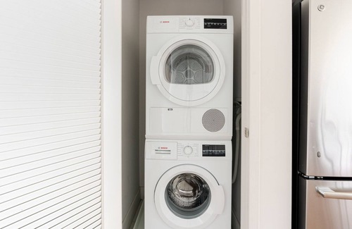 Al instalarte en este alojamiento de 1 dormitorio y 1 baño, encontrarás una sala de estar y aire acondicionado. Conéctate al wifi, o relájate frente a televisión. También hay un reproductor estéreo. El cuarto de baño incluye un secador de pelo y toallas. La cocina está equipada con horno, placa de cocina y frigorífico, además de cafetera y tetera, microondas y utensilios de cocina. Y gracias a la lavadora y la secadora, podrás viajar con poco equipaje. Otras comodidades incluyen ropa de cama, una tabla de planchar, servicio de limpieza disponible a petición y calefacción.