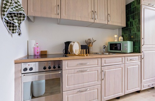 Prepara una comida casera en la cocina, equipada con horno, placa de cocina y frigorífico, además de cafetera y tetera, hervidor eléctrico y microondas. Conéctate al wifi gratis, o relájate frente a un Smart TV. El cuarto de baño incluye un secador de pelo, toallas y papel higiénico. Otras comodidades de este alojamiento de 1 dormitorio y 1 baño incluyen una sala de estar, ropa de cama, calefacción y una mesa de comedor.