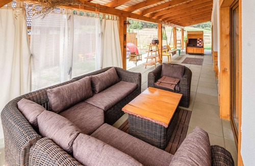 Situada cerca de un bosque, su casa de vacaciones le da la bienvenida a unas vacaciones llenas de actividades divertidas y bellos servicios. El impresionante exterior de su casa de vacaciones se funde con un ambiente acogedor y confortable en el interior. Cene en la bonita cocina-comedor y utilice la mullida zona de sofás para jugar a divertidos juegos de mesa y relajarse. En todas partes se respira un ambiente agradable y acogedor.