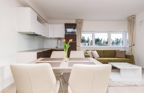 Pag es una isla de hermosas playas, calas escondidas, olivos centenarios, rico patrimonio histórico y mar cristalino. La isla está unida al continente por un puente, por lo que se puede llegar fácilmente. En la playa de Novalja es la famosa milla de fiesta Zrce, que atrae a más y más invitados de todo el mundo cada año. Los propietarios también tienen una parte de la playa en concesión, donde los lugares están asegurados para usted. Los coches se pueden aparcar en el garaje. La propiedad está totalmente vallada, lo que permite a sus hijos jugar con seguridad. La casa consta de dos pisos de 1 dormitorio conectados por escaleras exteriores. La piscina de aprox. 45 m² se comparte con el propietario, los huéspedes de los pisos CKP553 y CKP554 y otros tres pisos situados en la misma parcela. La propiedad también dispone de una cocina exterior donde se pueden preparar numerosas especialidades. El elegante mobiliario interior y exterior y el completo equipamiento le garantizarán una estancia agradable. Disfrute del excelente cordero y queso de Pag, vinos de calidad y numerosos eventos organizados durante los meses de verano. Visite el Parque Natural Lunske Masline y conozca historias sobre cada uno de los viejos olivos y la tradición de Lun. Durante sus vacaciones, no deje de visitar la ciudad de Zadar, con su ornamentada arquitectura, sus antiguas murallas y su casco antiguo de estilo veneciano. Visite las maravillas de la arquitectura moderna y déjese hechizar por el órgano del mar con sus maravillosos sonidos, así como el saludo al sol con sus maravillosos efectos de luz por la noche.
