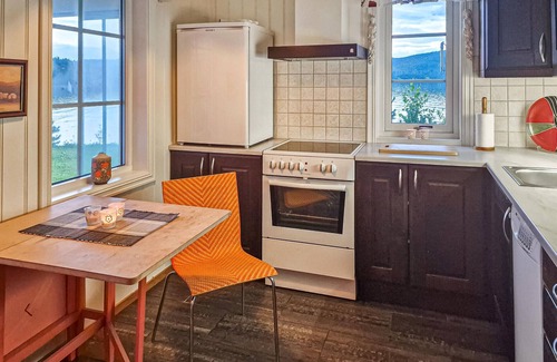 Pase unas vacaciones relajantes en esta encantadora casa de vacaciones en Skatval, que está situada directamente en la costa del fiordo y le ofrece paz y naturaleza. Disfrute de los días soleados en la amplia terraza, equipada con acogedores muebles de jardín, y deje vagar su mirada sobre el agua. Ponte cómodo y regálate un descanso de la vida cotidiana mientras te relajas al aire libre. En el interior, le espera un ambiente acogedor con un salón hogareño, donde la estufa de leña proporciona un calor agradable en las noches frías. Utiliza la práctica cocina comedor para preparar tus platos favoritos.
