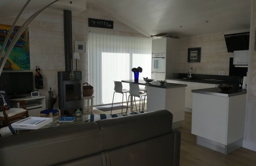 Situado cerca de las playas, escuela de vela y tiendas. Fue renovado en 2012 y se clasifica tres llaves por Clévacances. Toda comodidad: sala de estar con vistas al jardín con estufa, sofá-cama de cuero (140) mesa de café, TV de pantalla plana, equipo de música, teléfono, reproductor de DVD, WIFI equipada cocina con isla / 4 o 5 sillas, lavavajillas, nevera-congelador, vitrocerámica, microondas horno multifunción, lavavajillas y batería, cafetera tostadora, hervidor de agua. Sala de 9m2 con cama de 140 cómoda y armario, pequeña habitación con dos literas y estantes 90. Cuarto de baño con plato de ducha, secador de toallas, secador de pelo, estante. Baño independiente, lavadero con lavadora, aspiradora, plancha y tabla de planchar .... listo Posibilidad cuna plegable agraciado, trona, bañera bebé ..... alquiler Posibles ropa de cama, toallas