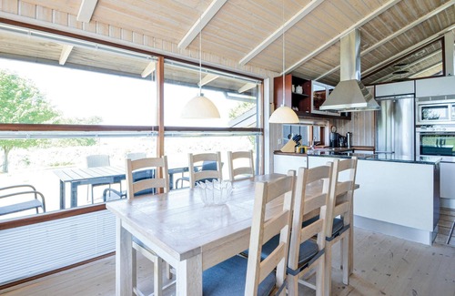 Casa de vacaciones del más alto nivel con una ubicación cerca de la costa y con vistas al agua. Está bien equipada y es un buen lugar para unas vacaciones tanto para una como para dos familias. La ubicación en una parcela llana con buenas terrazas orientadas al sur hace que la vida al aire libre sea cómoda. En la casa se puede pasar horas acogedoras junto a la chimenea y con una película en la televisión, o ponerse cómodo en la sauna y el jacuzzi. No muy lejos de Ebeltoft con restaurantes y tiendas.