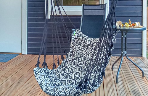 La zona exterior es ideal para socializar. Siéntese en la terraza cubierta con mesa de comedor o relájese en el salón. Hay una hoguera con bancos en la zona sombreada del jardín para disfrutar de acogedoras noches de hoguera. A los niños les encantará el columpio, la hamaca y la gran zona de juegos compartida con tobogán, columpios y parque infantil en las inmediaciones. Una sauna de barril y una bañera de hidromasaje, ambas compartidas, proporcionan momentos de relax.