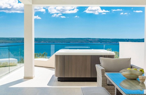 Esta fantástica y luminosa villa le da la bienvenida con unas fantásticas vistas al mar de Karin.