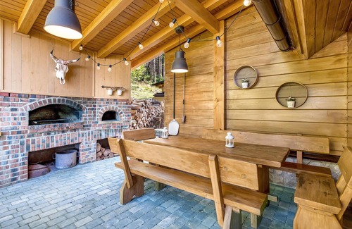 Esta casa de vacaciones bien equipada está rodeada de hermosa naturaleza en Mrkopalj, lejos de los atascos de tráfico y el ajetreo de la gran ciudad. La casa de madera, típica de esta zona, dispone de un salón con cocina, tres dormitorios, tres cuartos de baño, un aseo adicional, una sauna y una bañera de hidromasaje en la terraza para ocho personas. La casa está situada en los últimos metros del camino que sube a la casa (aprox. 50 m), el firme es de grava. También se puede aparcar el coche en la parte inferior. Inclinación del tejado hasta aprox. 160 cm. Hay 4 bicicletas disponibles en la casa. Gorski Kotar ofrece una gran variedad de actividades, como rafting, parapente, rutas de ciclismo y senderismo y una temperatura muy agradable durante los días de verano.
