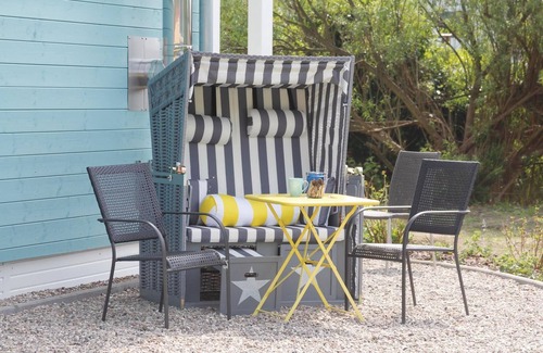 En el exterior, lo más destacado de la casa es una tumbona de playa donde podrás ponerte cómodo. Disfruta de los rayos del sol y del primer café de la mañana en la silla de playa protegida.