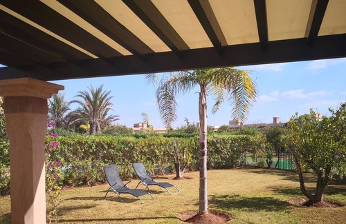 Muy hermosa villa reciente en el dominio seguro 24h / 24 de la Orangeraie en Dyar Shemsi. Totalmente equipado con 2 dormitorios, 1 baño, sala / comedor y cocina, patio y jardín privado sin vecinos.