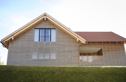El patio, construido alrededor de 1854, se renovó ampliamente en 2002-2014, por el cual se prestó atención a la preservación del encanto y la sustancia, por un lado, así como el uso de materiales de construcción ecológicos por el otro. Desde la propia zona de entrada con un guardarropa en la planta baja, la escalera conduce directamente a la sala de estar abierta con cocina, comedor, esquina de TV y logia. También en el primer piso hay un inodoro con lavadora y secadora, así como la espaciosa área de bienestar con utensilios de Kneipp y sauna de cabina de troncos. En el segundo piso hay dos habitaciones a dos aguas con cama doble, cama de sofá, así como áreas de ventana de formato grandes que permiten la vista sobre los techos del lugar.