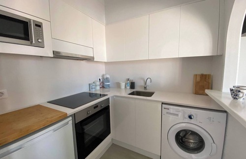 El apartamento está muy bien cuidado, renovado, equipado y decorado con muy buen gusto. Tiene una agradable terraza con vistas al mar y tumbonas, salón-comedor, cocina totalmente equipada, amplio dormitorio y baño.