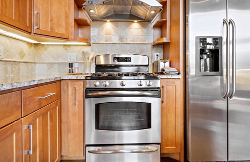Al instalarte en este alojamiento de 2 dormitorios y 2 baños, encontrarás una sala de estar y aire acondicionado. El cuarto de baño incluye un secador de pelo, toallas y papel higiénico. La cocina está equipada con horno, placa de cocina y frigorífico, además de cafetera y tetera, hervidor eléctrico y máquina de hielo. Y gracias a la lavadora y la secadora, podrás viajar con poco equipaje.