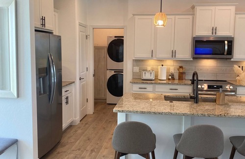 Este alojamiento de 4 dormitorios y 2 baños cuenta con una sala de estar, un comedor, una zona para barbacoas y chimenea. El cuarto de baño incluye un secador de pelo y toallas. La cocina está equipada con horno, placa de cocina y frigorífico, además de cafetera y tetera, máquina de hielo y microondas. Y como podrás aprovechar la lavadora y la secadora, no te hará falta llevar mucho equipaje.