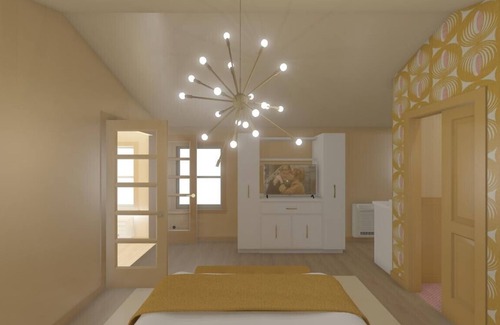 HURRY! Another memorable, completely renovated hotel suite inspired by the movie "Barefoot in the Park". It's the perfect downtown location in Williams Bay. The hotel is 1 block from the beach, upscale restaurants, coffee shop, and Clear Water medi-spa. Walk to everything! This cozy 1 bedroom includes a kitchenette and an adorable living room with a sofa bed for guests to relax. With amenities like patio, AC, heating, and hair dryers, this soothing retreat is a beautiful choice for your getaway. You're sure to make fantastic memories with a stay at our place.