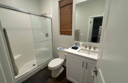 Este alojamiento de 1 dormitorio y 1 baño cuenta con una zona para barbacoas y aire acondicionado. Disfruta del wifi gratis y de los videojuegos. El cuarto de baño incluye un secador de pelo, toallas y papel higiénico. Prepara una comida casera en la cocina, equipada con horno, placa de cocina y frigorífico, además de cafetera y tetera, hervidor eléctrico y máquina de hielo. Y no tendrás que llevarte ropa de más, porque podrás aprovechar la lavadora y la secadora. Otras comodidades incluyen ropa de cama, una tabla de planchar y calefacción.