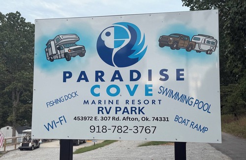 Located in Afton, enjoy what this newer 2023 recreational vehicle has to offer. This cool property features 1 king bed, 1 large bunk bed with plenty of space for 2 adults, 1 sofa bed in the cozy living room space with an additional full bed possible with the convertible dining table. Ample space for 7 adults. An electric fireplace with 58” TV above, heating, AC, an outdoor kitchen with large air fryer oven, and wifi provided! Guests can relax and unwind in this beautiful RV. There is a private boat ramp to access Grand Lake, with daily slips available for rent. Jetski docks as well as fishing docks. A local restaurant and bar within 1 mile.